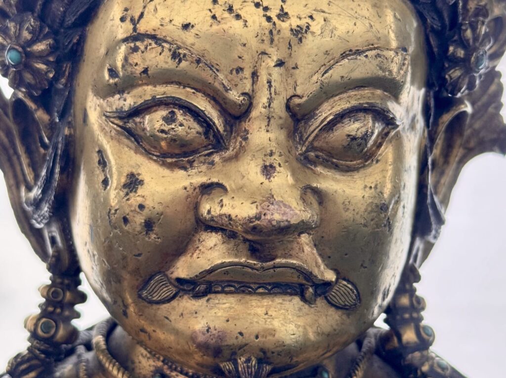 This sound installation is exhibited in conjunction with a statue of a Guardian King of the Four Directions – the centrepiece of a collection of surviving works of art from Densatil Monastery now on display at the Museo d’Arte Orientale (MAO) Torino. Densatil was burnt to the ground at the height of the Cultural Revolution, but not before, as we now know, some its treasures were carted off to safety. The sound installation gives voice to the Guardian King and tells the story of his tortuous journey from Tibet to the West. It hopes to restore to the Guardian King – and countless others like him who were violently evicted from their spiritual and physical context – the sanctity of a living deity that continues to hold deep religious significance for practitioners of Buddhism. At the same time, the work aims to catalyse a discussion on the provenance of Tibet’s religious artefacts that were looted from their original homes and have now found their way into various collections around the world.